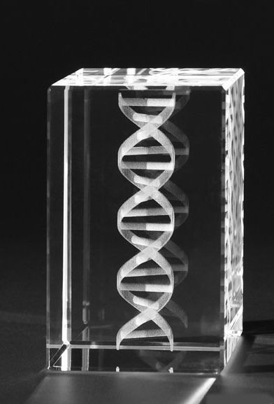 3D Laser Etched DNA Chain Crystal Block (80mm Cube)